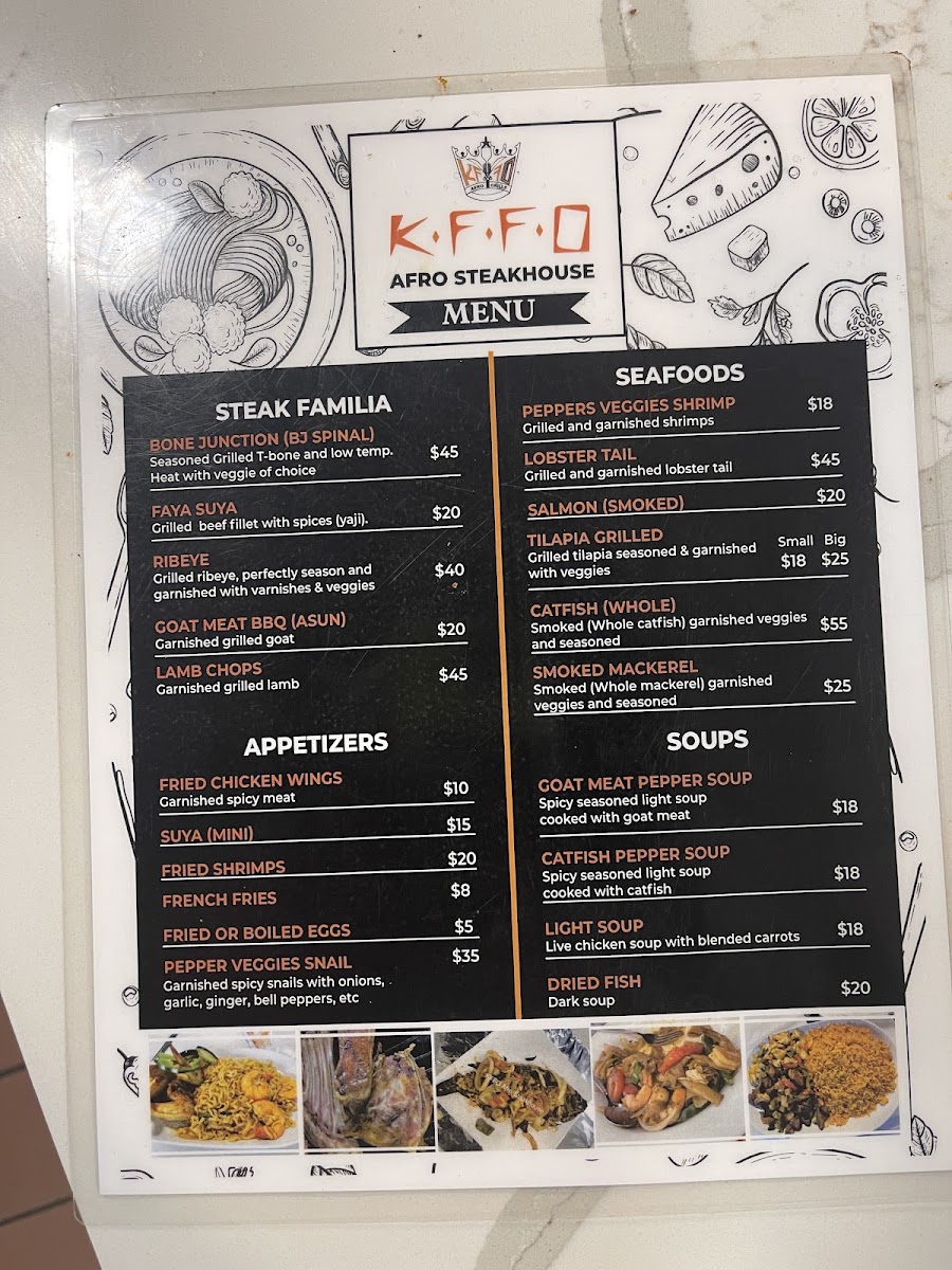 KFFO Afro Steakhouse, located at 14097 Westheimer Rd, Houston, invites you to experience an extraordinary culinary adventure. This vibrant eatery showcases the rich flavors of West African cuisine, featuring an enticing menu that will leave you craving for more.